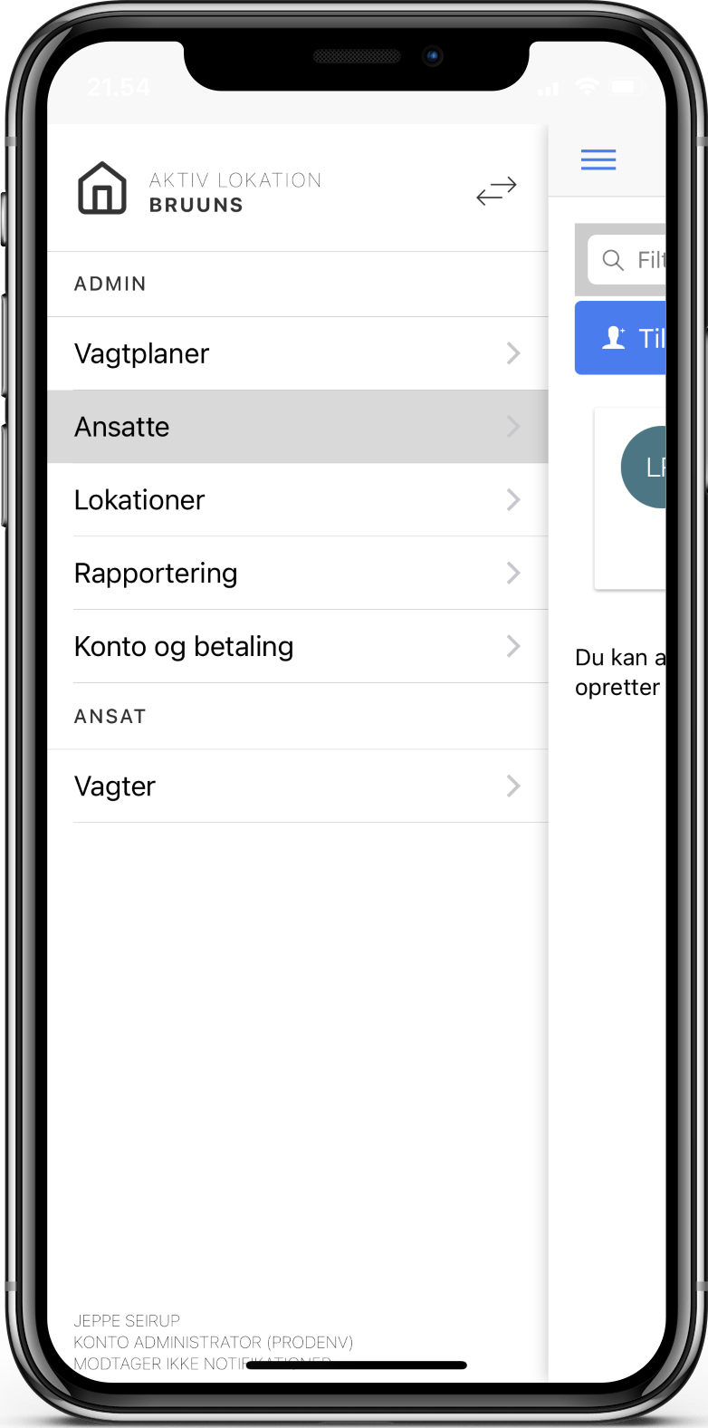 Under menupunktet ser du ansatte der allerede er oprettet, og du har desuden mulighed for at tilføje ansatte.