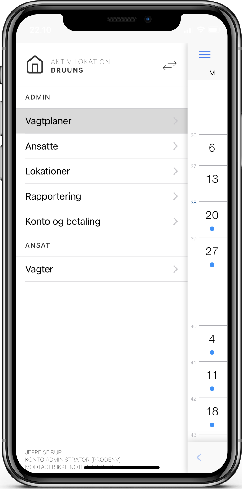 For at oprette en ny plan vælger du hovedmenuen i øverste venstre hjørne og klikker på Vagtplaner.